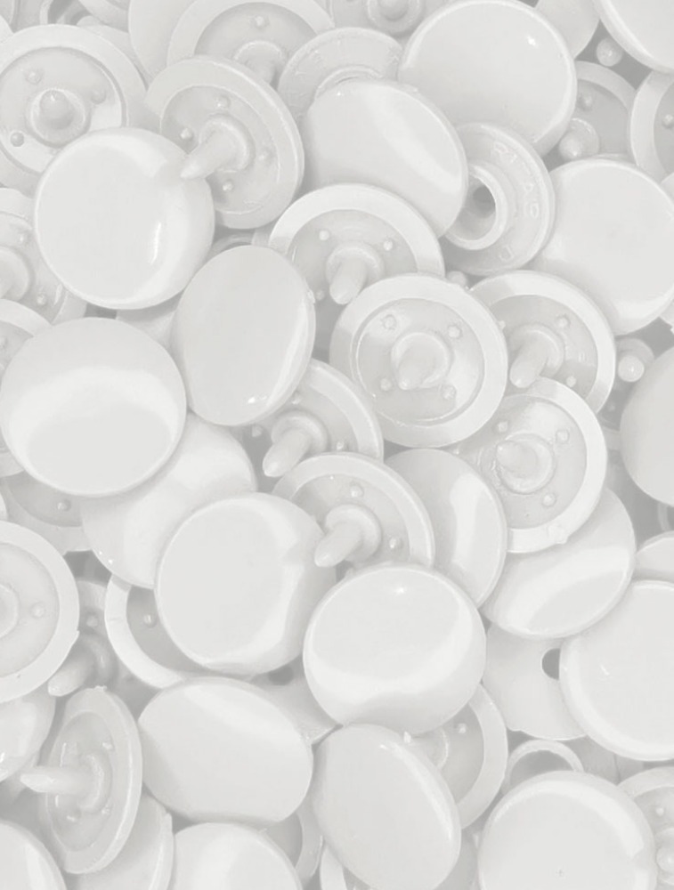 Diâmetro: 12,05 mm Altura do pino: 4,32 mm Diâmetro do macho: 10,25 mm Diâmetro da fêmea: 10,22 mm Espessura do botão fechado: 8,9 mm Composição: 100% Plástico derlin